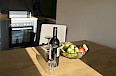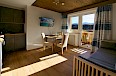 Helles Appartement im 2.OG mit einem Schlafzimmer (Doppelbett 180x200 cm, Zusatzbett 75x200 cm), Wohn-/Esszimmer mit vollausgestatteter, offener Küche (Kühlschrank mit Gefrierfach, Geschirrspüler, Kaffeemaschine, Herd mit 4 Kochfelder, Backofen), modernes Bad mit Dusche und WC, Sat-TV mit Flachbildschirm, kostenloses WLAN, großer Südbalkon.